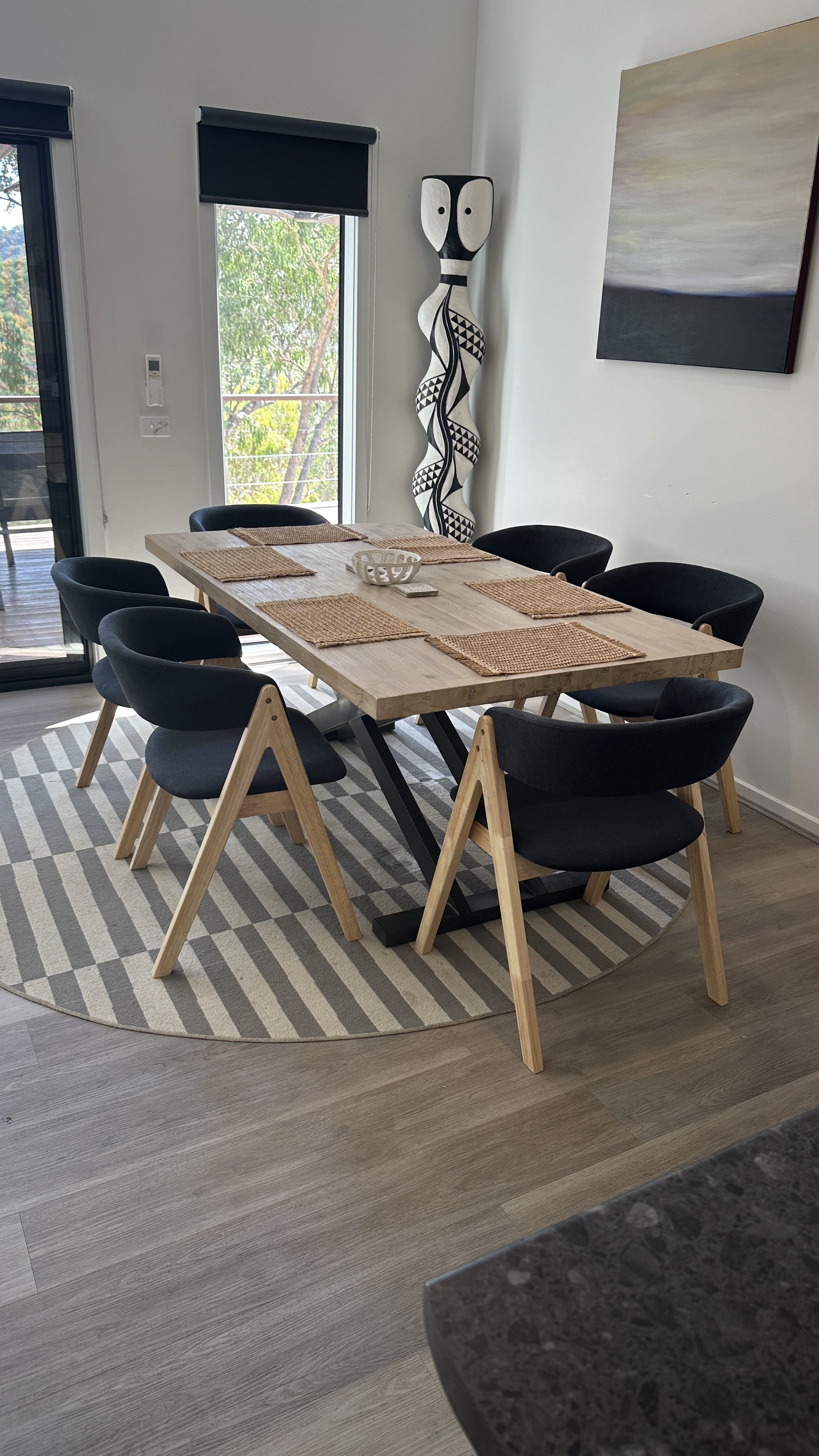 Escape to the serene beauty of nature at this stunning Eildon retreat. This exceptional contemporary getaway is designed for up to 7 guests and is set on 5 private acres, offering breathtaking views of the valley below. The property boasts 3 bedrooms, 2 bathrooms, and ample amenities including heating and cooling systems, extensive parking for boats and trailers, and a fantastic front deck, all just minutes from the Eildon township. The Kitchen and Living Room: Experience the allure of open-plan living, featuring cathedral ceilings, expansive windows, and an abundance of natural light that frames beautiful vistas in every direction. The stylish central kitchen, equipped with electric cooking and bench seating, flows seamlessly into the dining area. Adjacent to this is a welcoming lounge area, complete with a split system for heating and cooling, as well as a cozy wood fire. This inviting living space extends to the outdoor deck and fire pit, where you can enjoy elevated views of the valley and observe local wildlife. The Bedrooms and Bathrooms: The home comfortably accommodates up to 7 guests across 3 bedrooms. The master bedroom features an ensuite and a walk-in robe (WIR), while the second and third bedrooms each offer built-in robes (BIR). The main bathroom includes a bath, shower, and separate toilet for added convenience. Outside: The property now boasts a non-heated above-ground plunge pool, perfect for a refreshing dip. Surrounded by natural bushland and native gardens, you may spot occasional kangaroos, echidnas, or wombats passing by. There is plenty of parking available for cars and boat trailers, along with 5 acres of private land to explore. The Eildon township is approximately 2km away, conveniently close for a leisurely walk. This retreat offers a perfect blend of privacy, comfort, and natural beauty, ensuring a memorable escape in Eildon. Getaway Property Management Terms & Conditions: For security and fraud purposes, guests are required to complete a booking form, provide licence ID for guests and confirm payment details prior to check in. These identification details must match the details of the person who made the reservation. Strictly No parties This property does not accept hens or bucks’ gatherings. Penalties as per terms and conditions agreement will apply to guests. This property does not accept schoolies, penalties will apply to guests. If you wish to book this property between schoolies dates -November 24th – December 10th, please call Getaway Property Management to discuss. No smoking on premises. No pets allowed. Please note that this property is patrolled by Coastcom security. 20% Deposit automatically taken to secure booking – Final balance due 30 days prior to guest arrival. No refund 30 days prior to original guest check in date – Partial refund eligible if booking is cancelled outside of 30 days from original guest arrival date. Linen Included - Pool towels not provided.