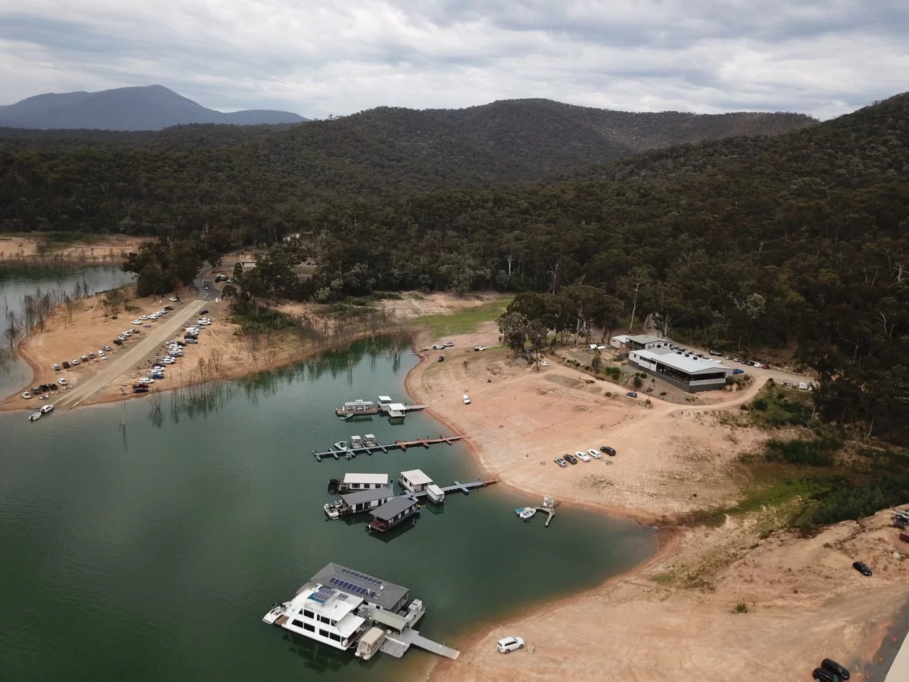 Just a 5 minute drive out of Eildon, you will find this magic view. Arriving here, you can dine in, stay on our floating accommodation, stock up on groceries at our mini supermarket and bottle shop! Get out on the water and hire Picnic boats (no boat license required), kayaks and stand up paddle boards or an actual fishing boat. You can even fuel up your boat or jetski at our floating fuel barge Then we have our upstairs Lake View Apartment available!